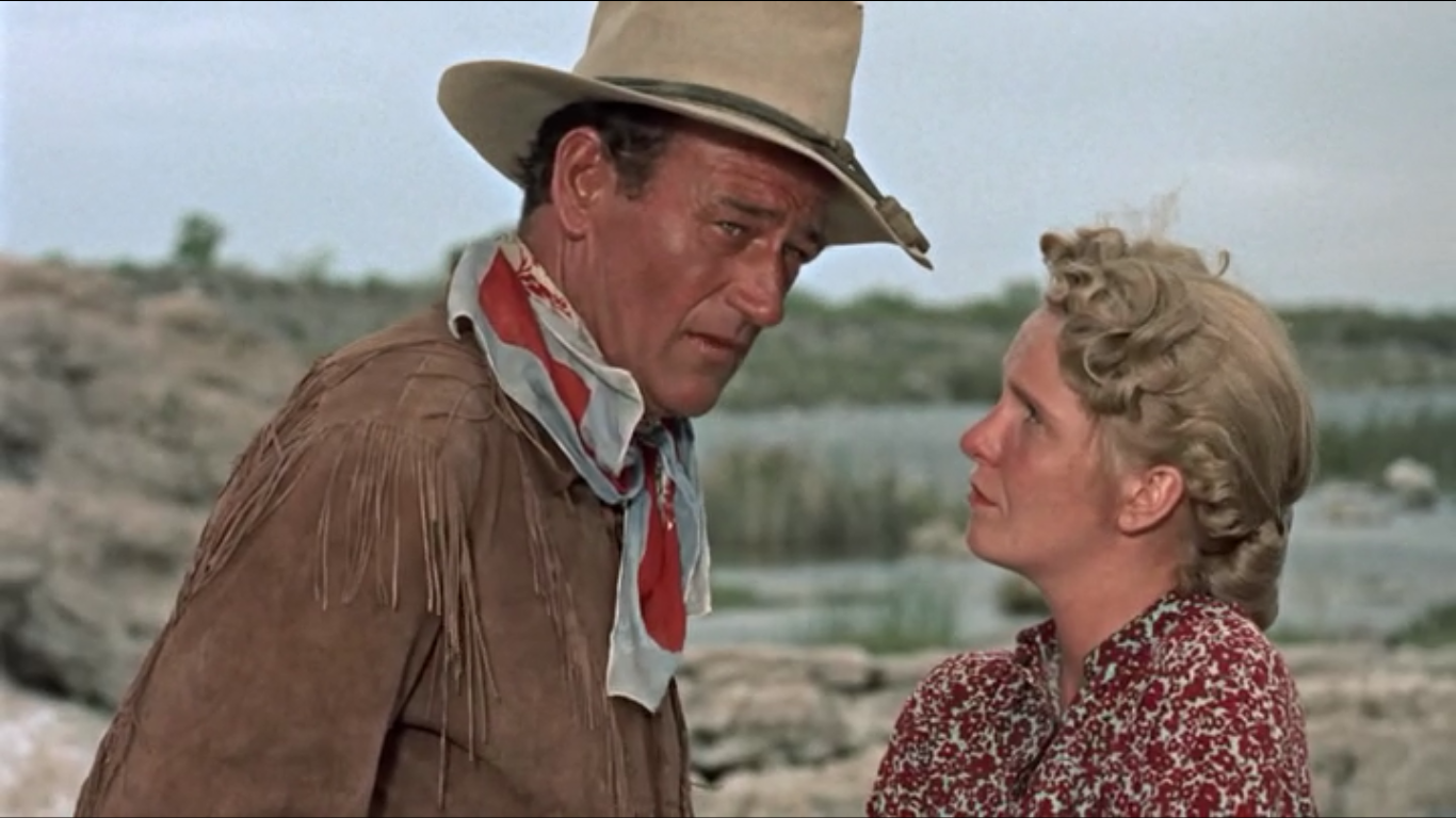 When Hondo’s not having run-ins with the Apache or on the brink of being killed, he gets in hot water with Lowe’s vagrant husband. Through it all he returns to the ranch and watches over Johnny who has been made a blood brother to the Apache.