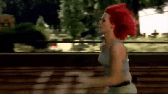 With all the scenery that Lola goes rushing by it seems necessary to dwell on the locales a little. Lola sprints past Garnison Cemetary (in the former East) at the start of every run. Furthermore, she can always be seen sprinting underneath the train on the Oberman Bridge which was formerly “a border crossing for Germans during the time of the wall” (Kosta, 175). An international audience may not know this, but for native Germans of a certain age, it implicitly suggests the post-unification period is in full force. Such landmarks are now symbols that signify that the East and West truly are united in contemporary Germany. This is just another detail that Tykwer does not directly tell us, but it just adds to the layers of the film.