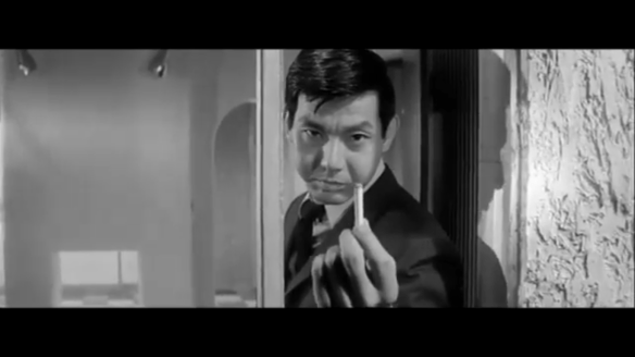 In this world of guns and souped-up automobiles, Shishido, the chipmunked-cheeked cult hero of cool, somehow feels right at home. It’s all part of his work as he studies his target, sets himself up with a hotel room, and then prepares to get in and get out with surgical precision behind his sniper rifle.