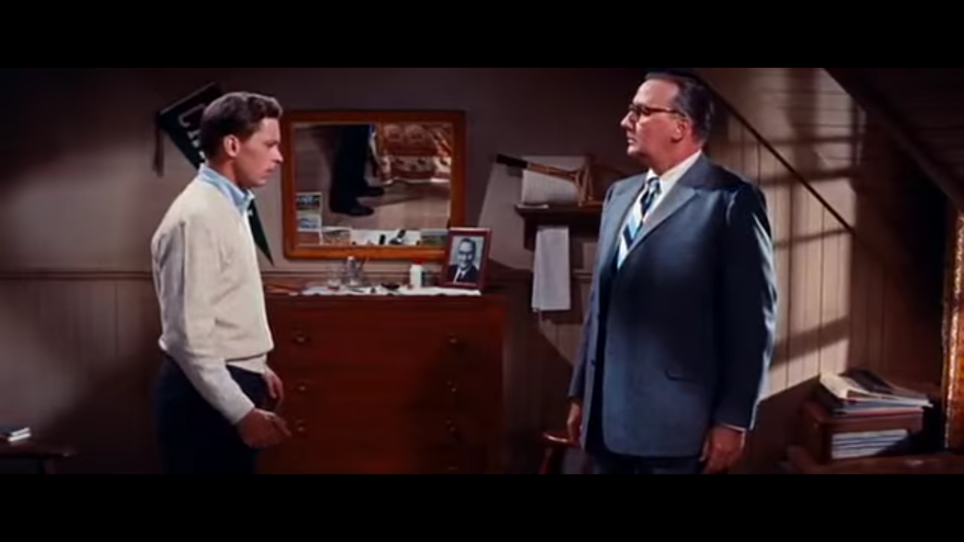 Edward Andrews has a kind of easy southern charm both somehow outwardly genial and still riddled with so much dysfunction. He chides Tom that you’re known by the company you keep. He should get a crewcut and take part in the pajama fights which are like a rite of passage. There’s something to be said for conformity — becoming one of the boys as it were.