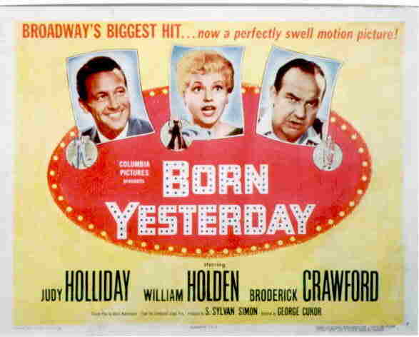 d21aa-bornyesStarring Judy Holliday, William Holden, and Broderick Crawford, this semi-comedy is about a dumb blonde who becomes cultured with the help of a tutor. Billie starts out as the girl of a gruff an who has made a fortune in metal. They are in D.C. together and he is embarrassed because she does not know how to act around well to do people. He brings in a young journalist to tutor her and over time, her mind and outlook on life changes. She is no longer one to be trifled with and she finally sees things for what they are. There is no doubt that Judy Holiday gave a good performance, I just did not find the film all that funny. I would rather watch My Fair Lady or Mr. Smith Goes to Washington which seemed to share similar aspects with this film.