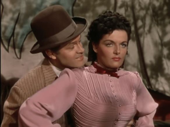 The opening premise is frankly pretty corny. Cagney meets John Derek at a watering hole very conveniently. They ride on together with no apparent purpose except to get to the nearby town. Then, in a freak misunderstanding, while they’re shooting some scavengers out of the sky, the two men are mistaken for train robbers, and they have a bag full of cash literally dropped in their laps.