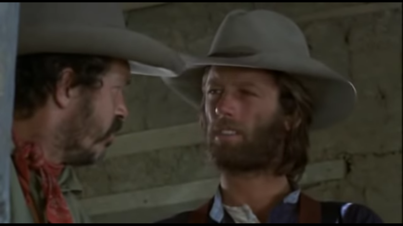 The film remains mostly a sullen affair plagued by death, but not just physical death, the death of joy or adulation in any sort of quality life. It starts grappling with the life of a drifter — the camaraderie of saddle buddies — and the solace of a settled home life. Because Harry Coilings didn’t always live this peripatetic existence. Once he was married. Funny how he never mentioned it before to his companions, but then again, the overwhelming emptiness in his heart has made him crave something different. So he and Arch pay a visit to his former missus.