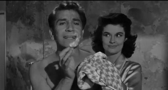 In The Brothers Rico, he and Dianne Foster are surprisingly frank, and they have a playful rapport between kisses, shaving kits, and showers. It’s all telling character work to set up a more rudimentary story.