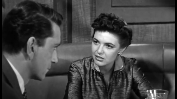 It happens again when she signs on as a hostess at a local joint. She’s always sashaying and slinking around burning up the local establishments and street corners like red-hot coals. The first moment she sets sights on Matt Bannister (Richard Egan), she gives him the eyes. He runs the place with his hag of a wife. Already we know their marriage is instantly in jeopardy when Billie lands the job.