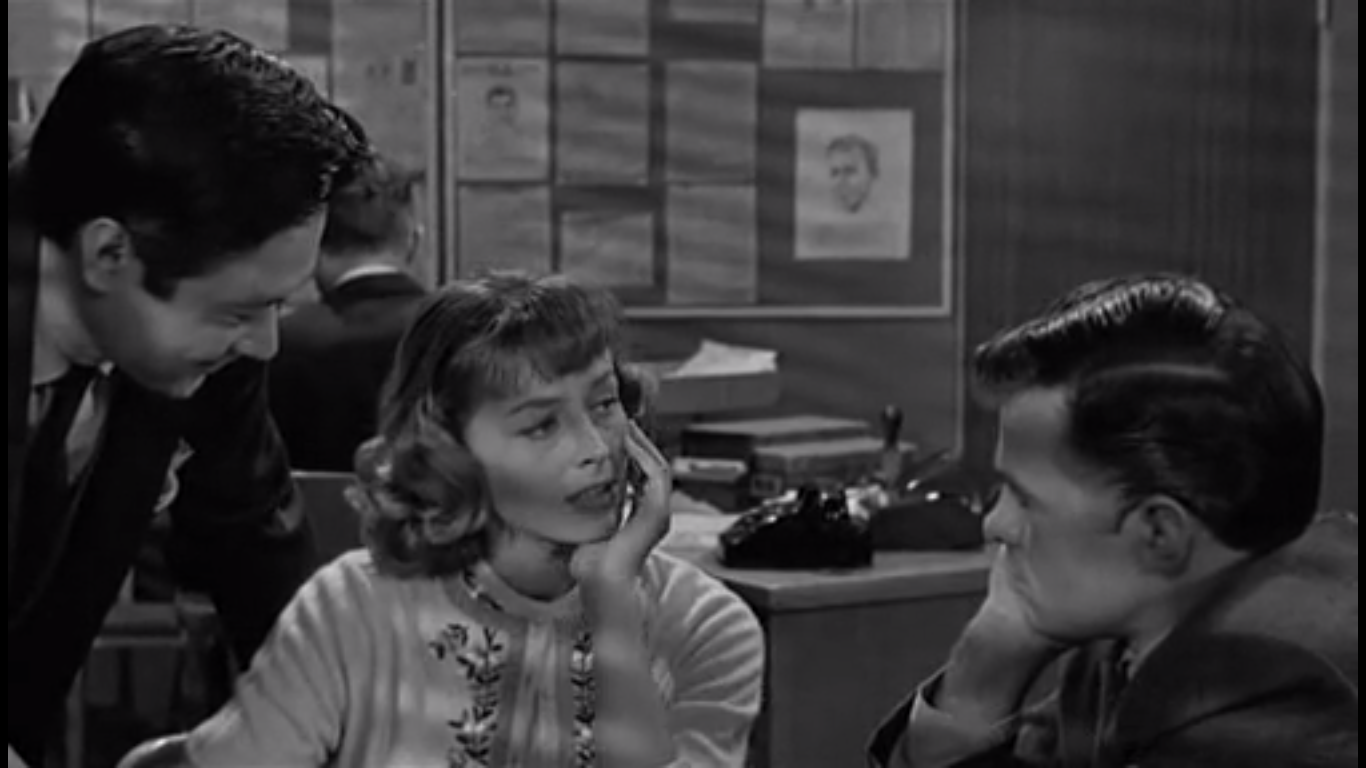 Regrettably, posters for this film were highly shallow and sensational reflecting the age with taglines like “Yes, this is a beautiful American girl in the arms of a Japanese boy!” or “What was his strange appeal for American girls?” It places this character in the typical category of an exotic lover. He’s not a real man, only an enticing mysterious foreigner with strange appeal. Likewise, the title Crimson Kimono itself brings to mind oriental exoticism involving strange dress and foreign culture. This could have just as easily been a dated film of yellowface and Asian stereotypes, but it’s superfluous to judge this film by its posters and title alone. When you actually watch Fuller’s work these are not the focal points at all. As Fuller later said himself, “The whole idea of [his] picture is that both men are good cops and good citizens. The girl just happens to fall in love with the Nisei. They’ve got chemistry” (A Third Face). Chris likes Joe because he is a genuine hero, not because the other man is not. Joe is sweet and shares a love of art (piano and painting) like her. She could care less that he’s Asian just like Charlie could care less. Those are the kind of people they are.