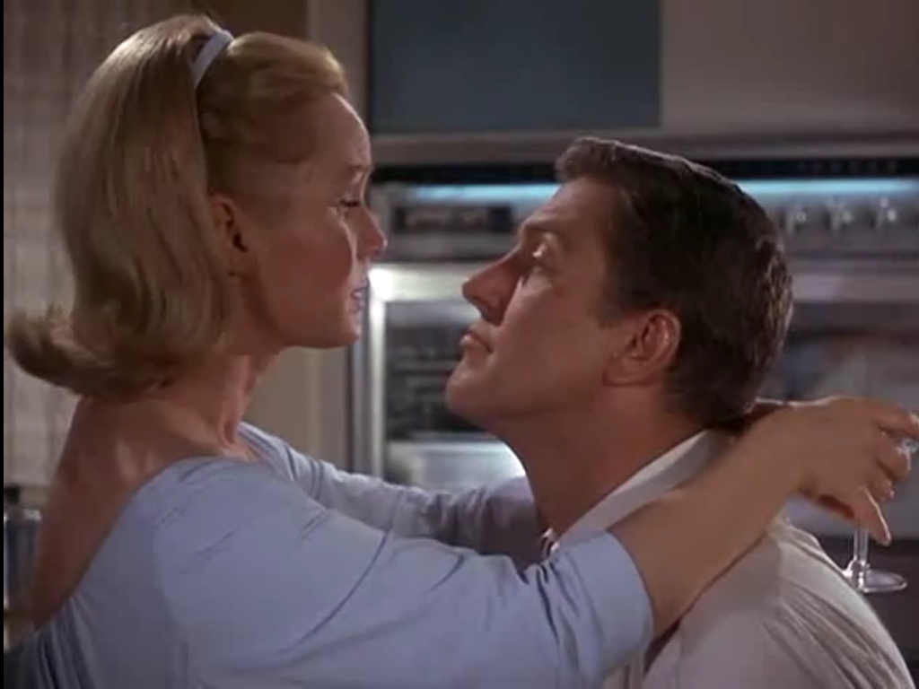 Here he’s front and center, an itinerant brush salesman, who happens upon the nation on business only to fall head over heels for the country and its people — one person in particular — her name is, of course, Angela (Susan Marx). They brush each other off rather seductively as her kid brother (Dickie Moore), a begrudging and silent cupid, does his best to keep them apart.