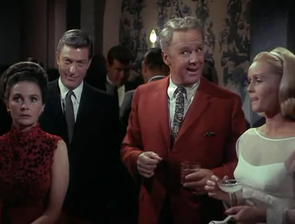 The Olympics aren’t much different with the Klopstokian contingent in a shambles before Angela rallies them jumping from the high dive to have it out with the duplicitous mata hari once and for all. Then, her father shows off his feats of strength in the weightlifting competition against his rival cabinet member. All pretense of logic is gone. Just go with it. Take it for what it is.