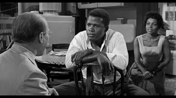 It’s in this said park where she first meets Gordon Ralfe (Sidney Poitier). If we wished to describe him, you could highlight any number of salient characteristics. He’s tall, handsome, and intelligent. He works the night shift, and he has a brother (Ivan Dixon) who’s training to be a doctor. He’s also black…